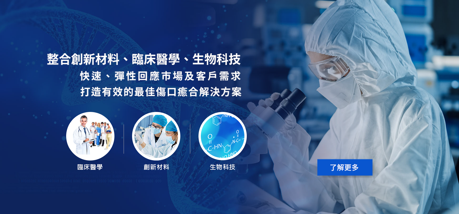 泰陞透過生物醫學團隊深入對皮膚傷口的研究,結合材料、結構與製程 的專業技術,搭配臨床醫師的即時回饋,研發出最適合的傷口照護產品。